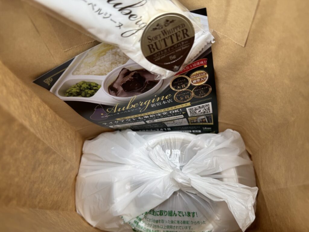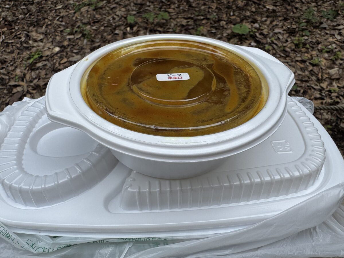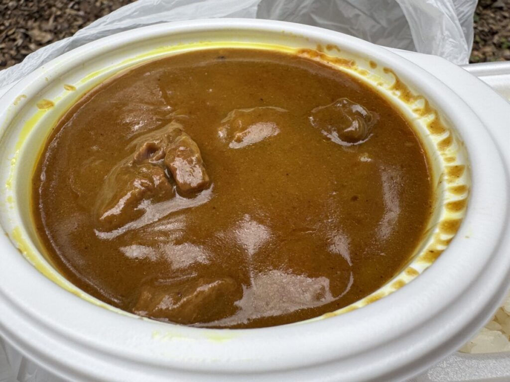 今回はビーフカレーの中辛を選び、テイクアウトで新宿御苑へ。