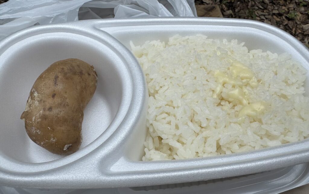 - バターライスとポテトがセットになった独自スタイル