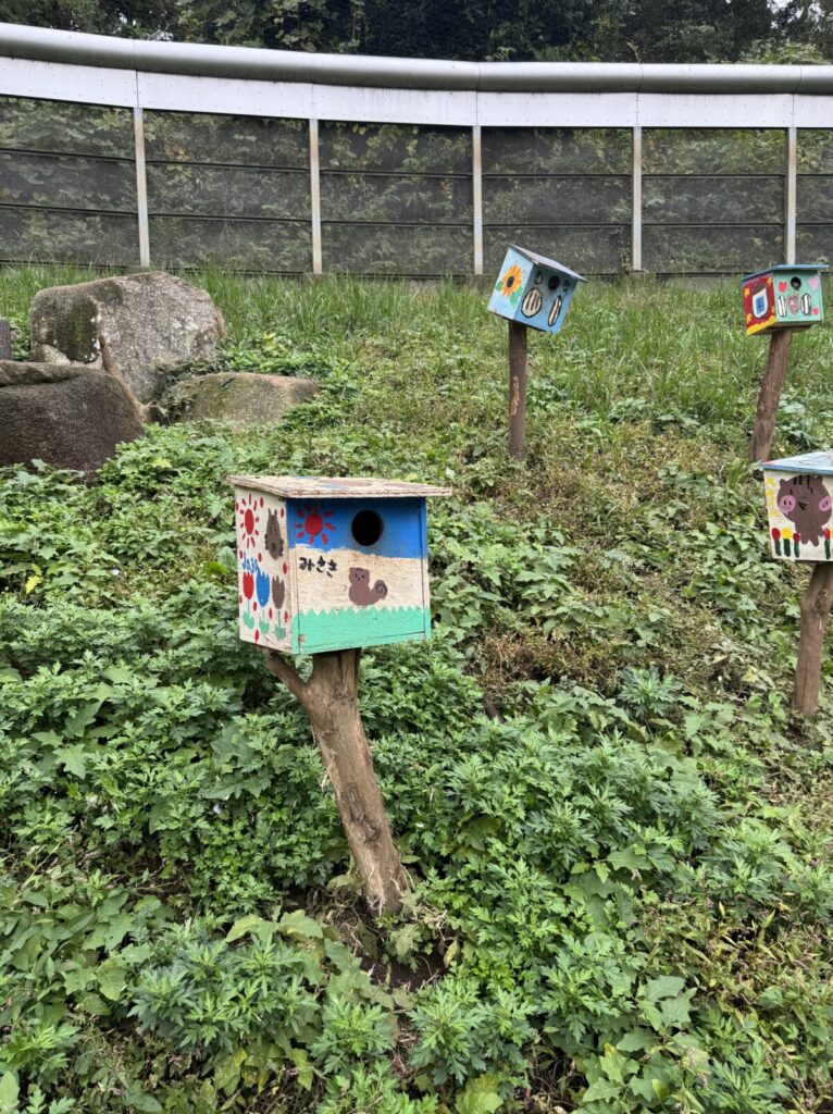園内には子供たちが絵を描いた木箱がたくさん置かれており、それを見て回るのも小さな楽しみの一つ。